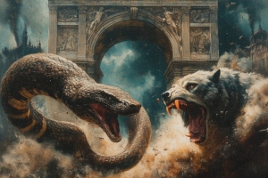 国米官方社媒晒出了为此役制作的海报,代表国米的灵蛇与代表罗马的巨狼展开对决。